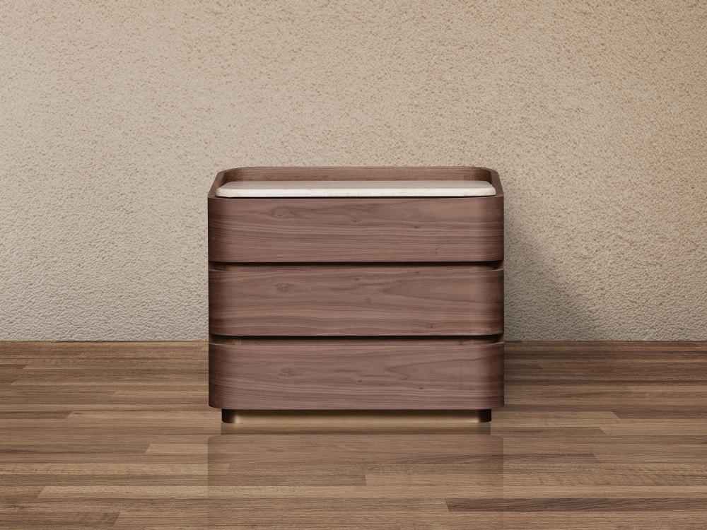 - Hydra bedside tables feature two (2) drawers providing sufficient storage. The drawers feature push–open drawer slides.