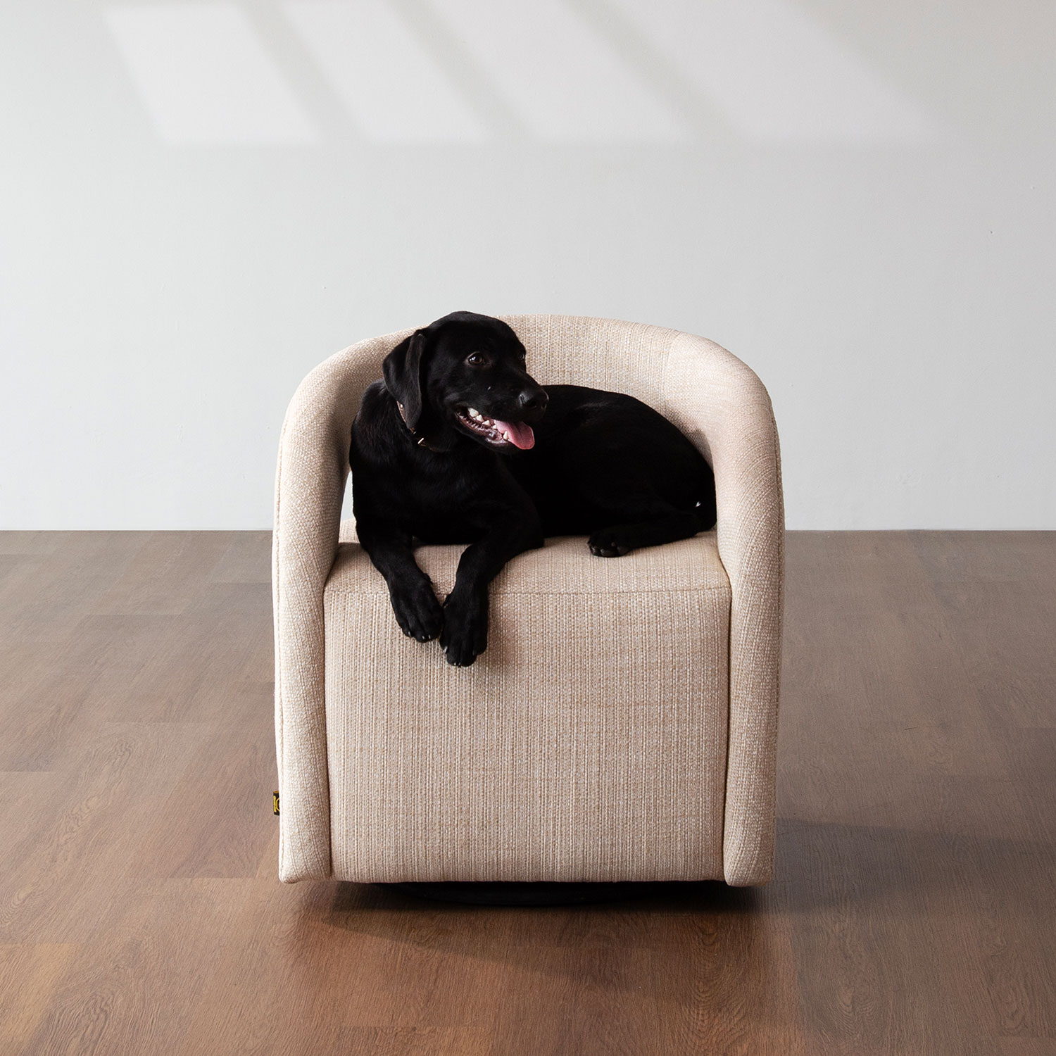 A padded swivel chair designed for comfort and ease. Its practical form blends with refined lines, making it both functional and elegant. Perfect for dining spaces that value flexibility without losing charm.