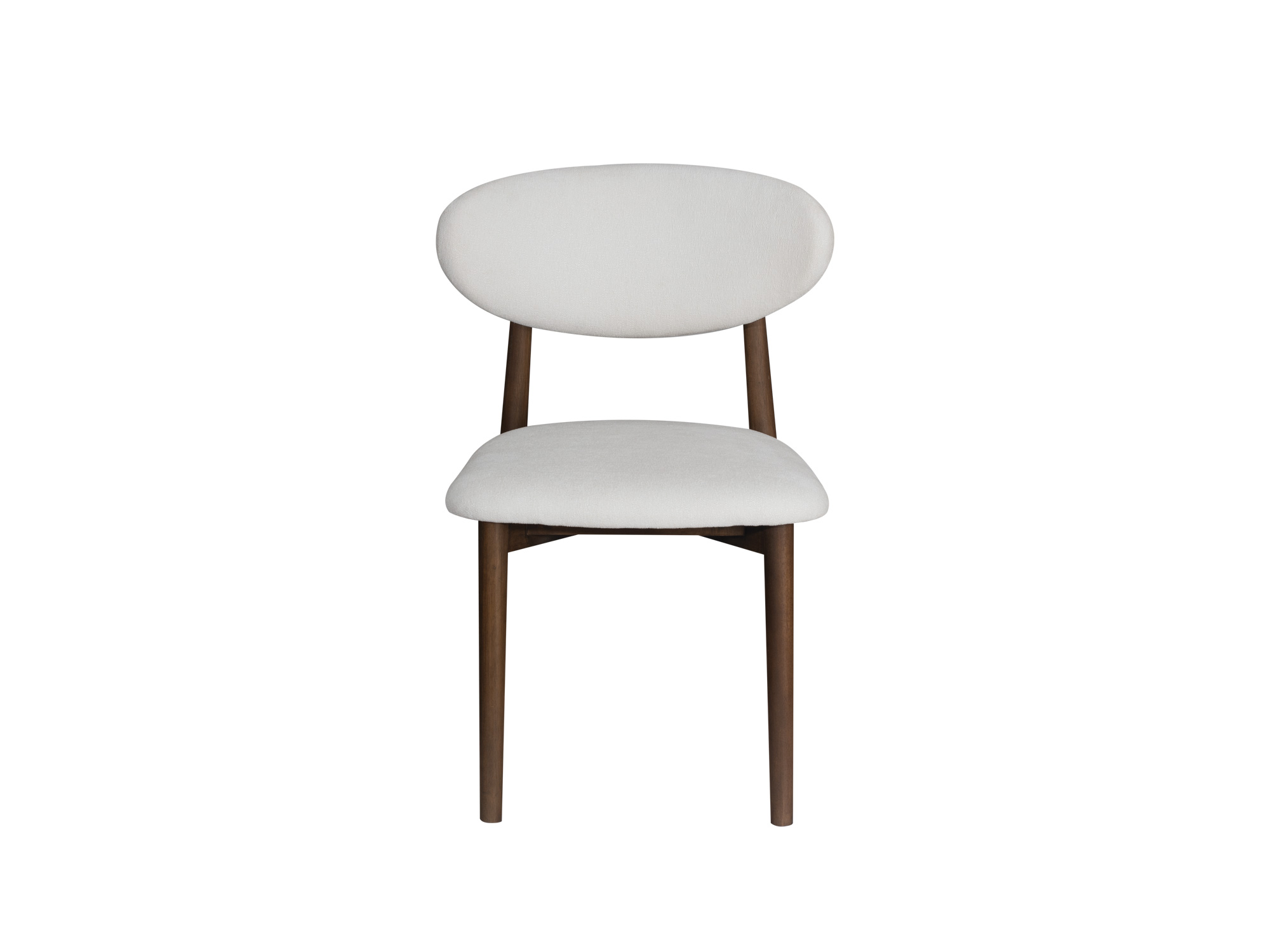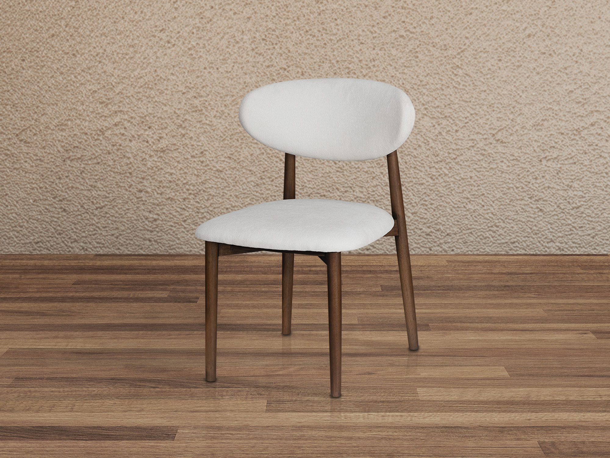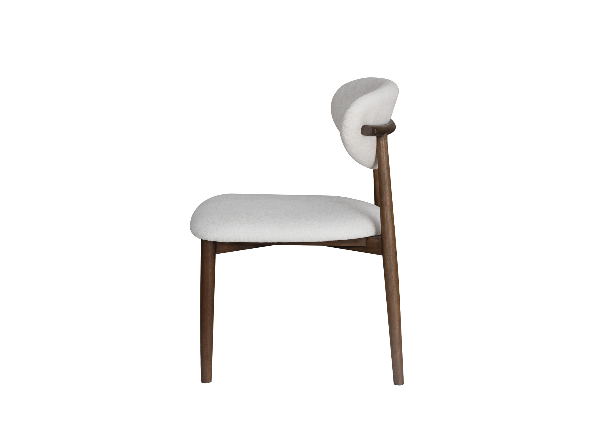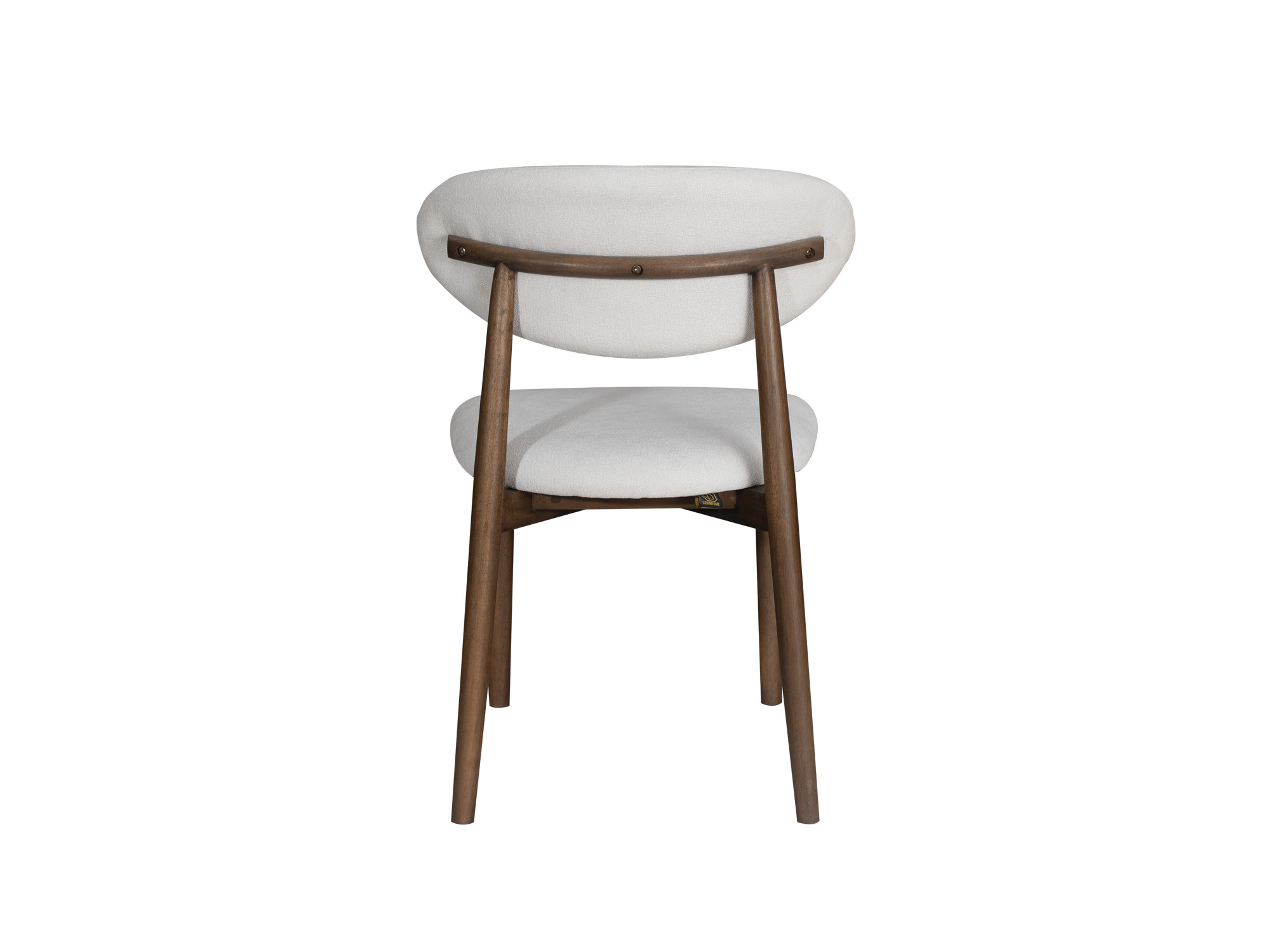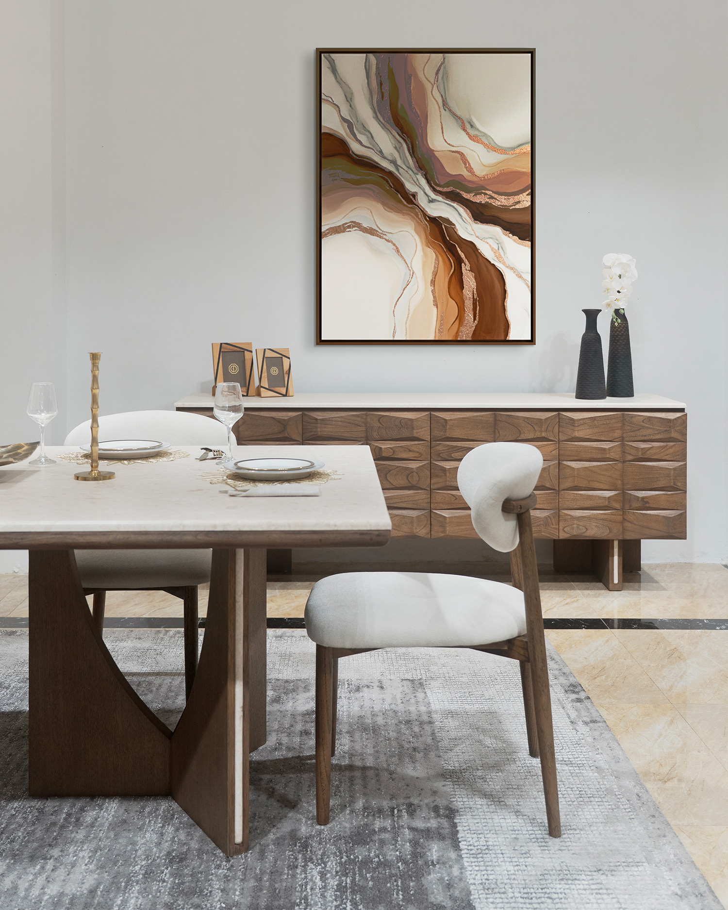 A natural mahogany wood frame meets a distinctive base, which brings quiet charm and timeless balance to the dining room.