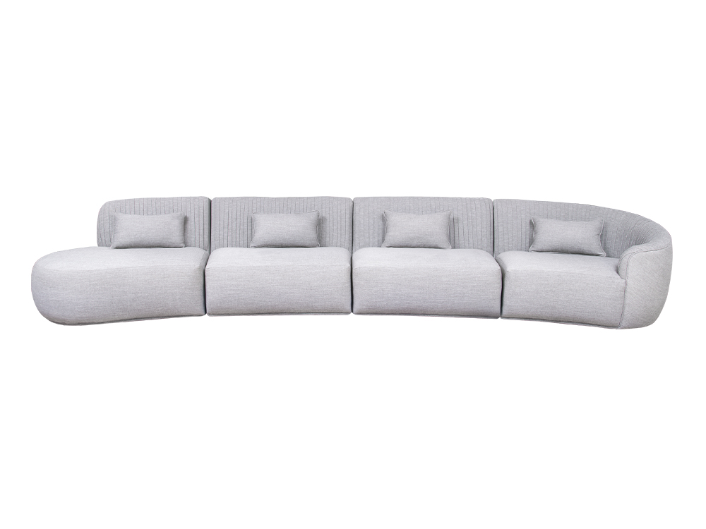 Endlessly comforting, Como s gently wide curvaceous silhouette, rounded backrest, and softly textured fabric invite you to lounge, relax, and treasure your moments. The single-welt trim and folded seam detailing revive the roaring 20s glamour. Como’s modular design makes any perfect seating arrangements that fit your living space possible.