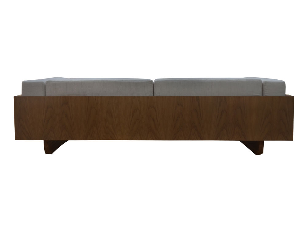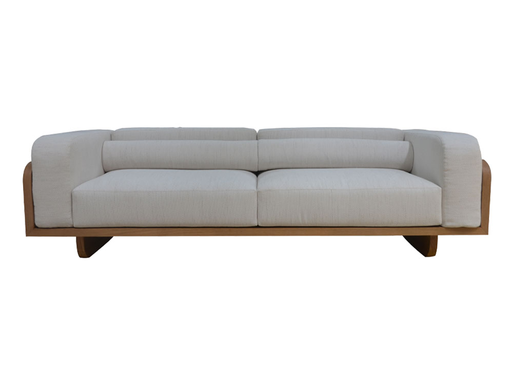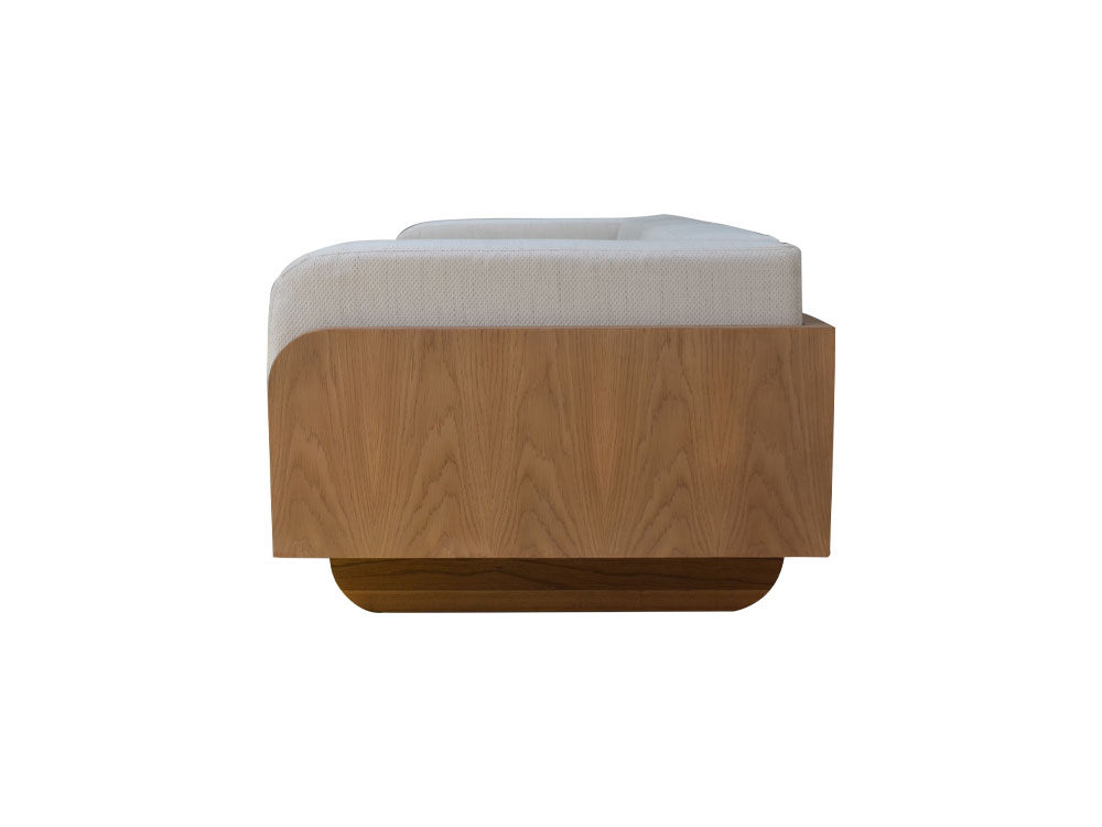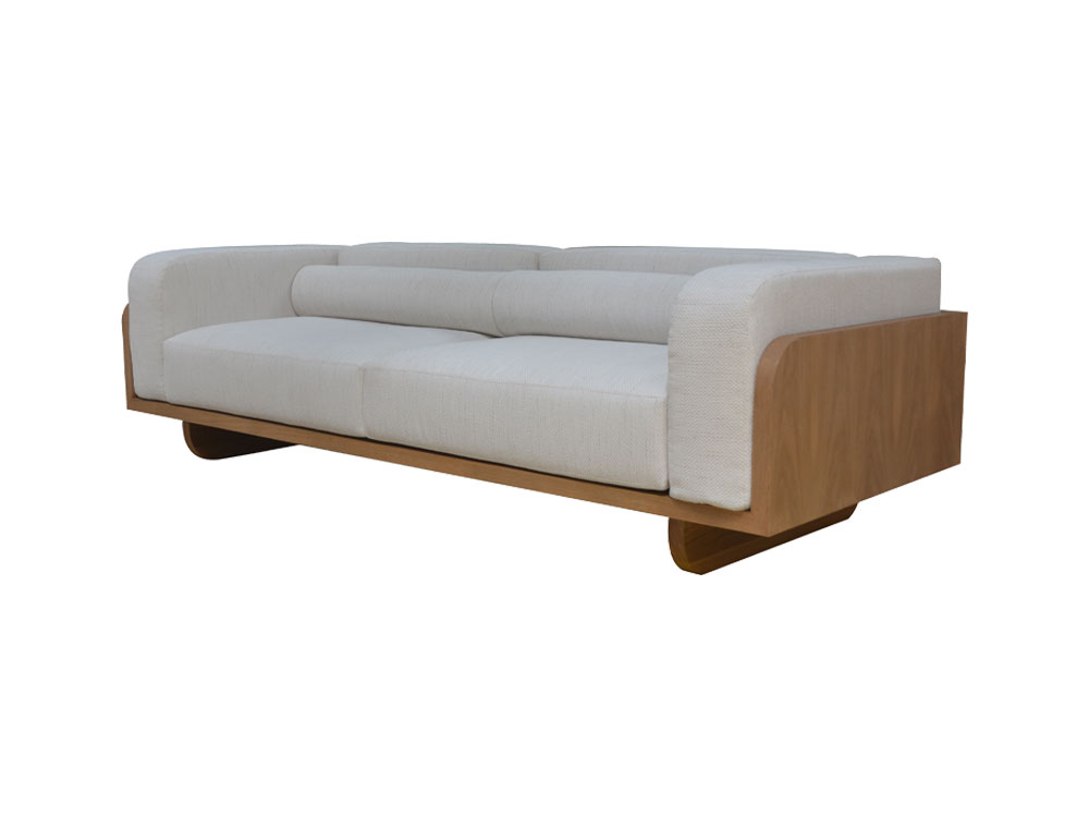 Craftsmanship–built for exceptional comfort and style, our Flax Sofa invites you to lay back in the comfort of its generous upholstery covered by expertly tailored soft fabric — creating the sink–into feeling. The upholstered silhouette is framed by mindi veneer in a honey mindi finish, perfected by the matte wood sheen.