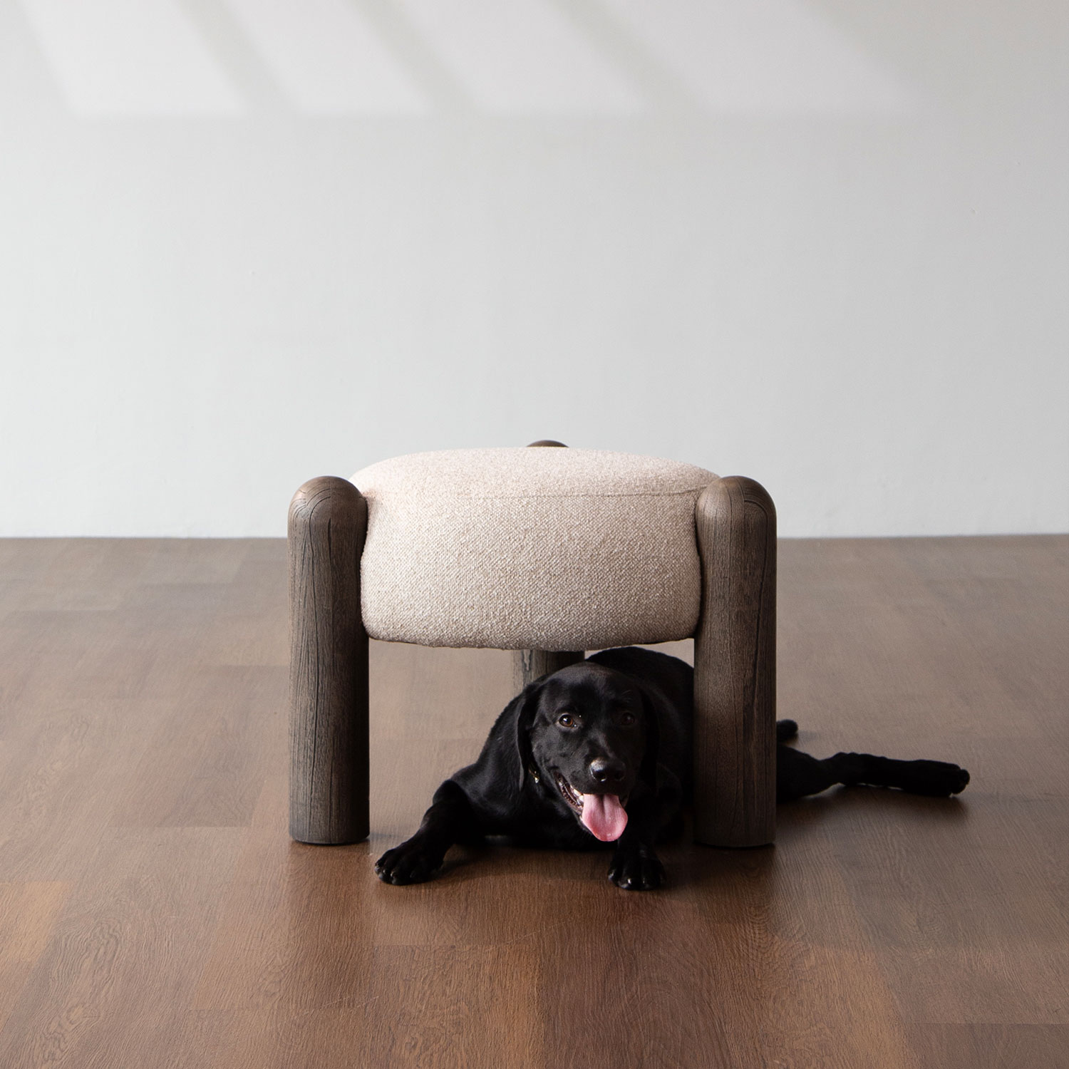 Our Elektra Ottoman is a functional yet stylish furniture piece. This round lightweight seating is suitable for a comfortable footrest, an extra seat, or a decorative accent. The plush cushion and solid mahogany legs wrapped in boucle–like fabrics display the harmony of comfort and unique style.