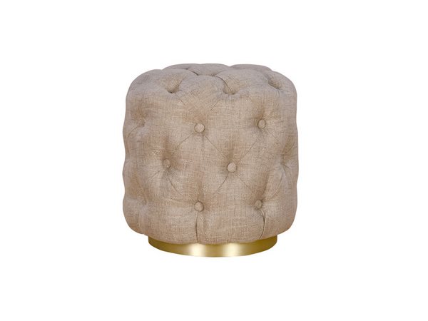 Perfectly designed for a small seat, our Pau Ottoman features plush upholstery wrapped in Prussian blue fabric and a brushed metal base. This round ottoman adds chic home decor to your living space while acting as a functional ottoman.