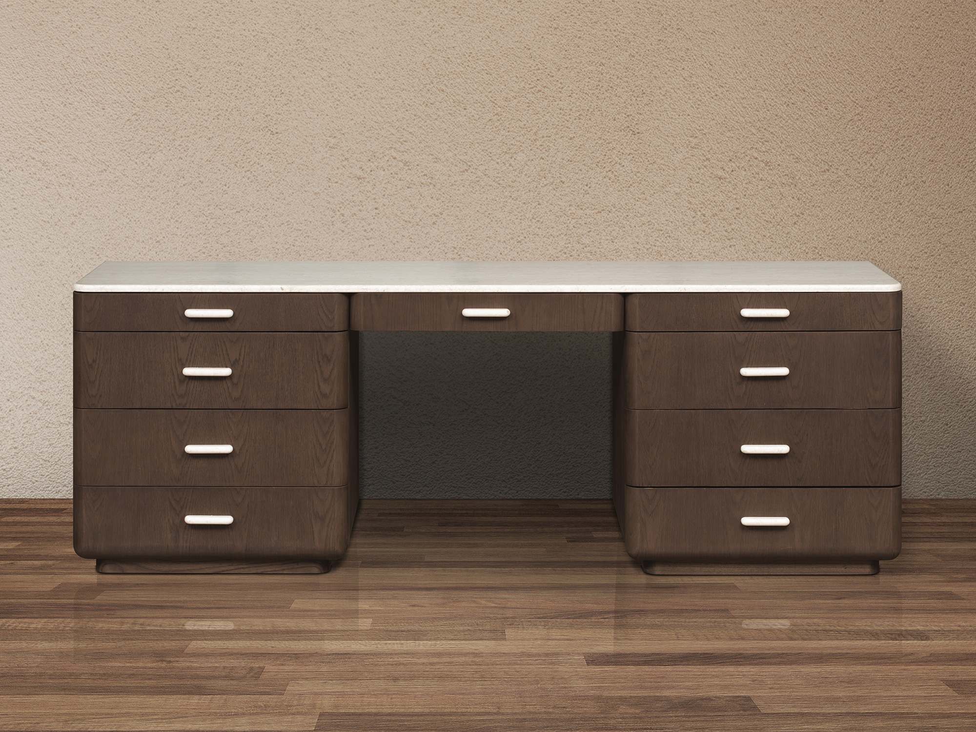 Minimalist in form yet rich in character, combining natural wood with oak veneer. Its cocooning design is refined by a marble handle that adds elegance and originality. A romantic space for daily rituals.