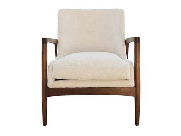 Alghero Accent Chair combines angled details, a low–profile, and plush padded back and seat cushions. The combinations offer deep seating in a minimalist style. Its sturdy solid wood arms and sled base are built from solid mahogany sculpted into rectangular frames. Not only does the design of low contoured back slats provide a relaxing experience but it also displays the natural and timeless graining accents for a modern yet minimalist look.