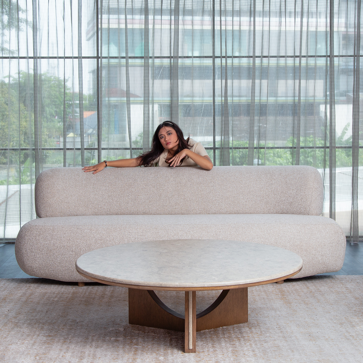 A sophisticated piece in Mindi solid wood with oak veneer, designed to embody timeless elegance. Its refined proportions and clean silhouette create a welcoming centerpiece for the living room. A perfect balance of comfort and sophistication, it elevates any interior with lasting style.